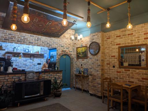 محیطش خوبه. کیفیت سرویسدهی و تنوع منو میتونه بهتر بشه. سیگار آزاده و به خاطر نقلی بودن فضا، میتونه در ساعتهای شلوغ برای افراد حساس آزاردهنده باشه.