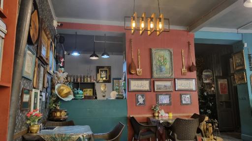 نمایش موقعیت منیه کافه دنج و متفاوت که از همون لحظهی ورود حس خونهی قدیمیِ پر از خاطره رو میده. دیوارها پر از قابهای هنری، کتابخونههای مرتب و جزئیات نوستالژیکه که باعث میشه هر گوشهش سوژهی عکس باشه. نورپردازی گرم و ملایم، فضا رو آروم و صمیمی کرده؛ جایی عالی برای قرار دوستانه، کتاب خوندن یا حتی یه گفتوگوی کاری بیاسترس. برخورد پرسنل محترمانه و صمیمیه و حس میکنی برات وقت میذارن. فضای کافه هم تنوع داره؛ هم جای خلوت برای نشستن دونفره هست، هم میزهای جمعوجور برای دورهمیهای کوچیک. اگه دنبال یه کافه با حالوهوای هنری و متفاوت از فضاهای تکراری هستی، اینجا قطعاً ارزش امتحان کردن داره.