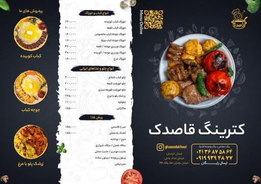تهیه غذای قاصدک (کترینگ و تهیه غذا) در محله کوثر تهران و خیابان اعلا واقع شده است. این مکان یکی از شش کترینگ و آشپزخانه در محله کوثر تهران میباشد و از نظر موقعیت جغرافیایی در نزدیکی مجتمع تجاری خراسان و همچنین مجموعه ورزشی شهید پناهی، ورزشگاه پناهی، فست فود تنور، پست صفاری و مصطفی ارشاد قرار گرفته است. با توجه به نزدیکی این مکان به ایستگاه مترو میدان خراسان، برای دسترسی راحتتر و کمک به داشتن هوایی پاکتر، میتوانید از وسایل حمل و نقل عمومی برای مراجعه به آن استفاده کنید.