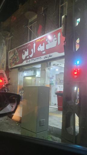اغذیه آرین (فست فود) در محله عسگریه مشهد و خیابان احسان 1 واقع شده است. و از نظر موقعیت جغرافیایی در نزدیکی هتل و مجتمع تجاری تفریحی ثابت (در حال ساخت) و همچنین کافی نت کاوش، نانوایی سنگک صیاد، مسجد امام حسن عسکری، میوه سرای دانیال و ایستگاه اتوبوس ابتدای شهرک عسگریه قرار گرفته است.