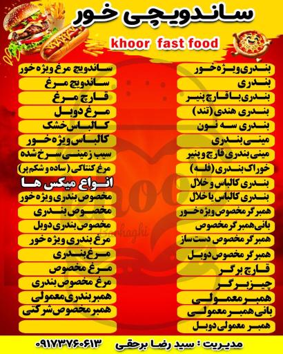 فست فود خور در شهر بندر گناوه، قرار دارد.