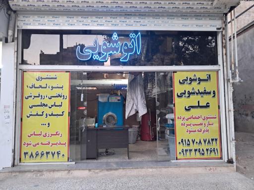 اتوشویی و سفیدشویی علی (خشکشویی) در محله آب و برق مشهد و خیابان عماد خراسانی واقع شده است. این مکان یکی از هفت خشکشویی در محله آب و برق مشهد میباشد و از نظر موقعیت جغرافیایی در نزدیکی دبستان هوش و هیجان، مسجد و حسینیه امام حسین (ع)، میوه فروشی حافظیه، تعمیرات کیف و کفش اهوازی و شوینده بهداشتی سعید قرار گرفته است.
