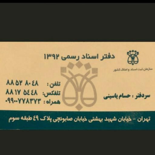 نمایش موقعیت مندفترخانه ۱۳۹۲ (دفتر اسناد رسمی) در محله نیلوفر - شهید قندی تهران و خیابان صابونچی واقع شده است. این دفتر یکی از بیست و هشت دفتر اسناد رسمی در محله نیلوفر - شهید قندی تهران میباشد و از نظر موقعیت جغرافیایی در نزدیکی مراکز مهمی مانند بیمارستان مادران و مجموعه چهل سرا و همچنین شرکت نیروآفرینان پاسارگاد، گروه دوران، رستوران زرچ، قنادی فرد توکلی و دفتر اسناد رسمی 1027 تهران قرار گرفته است. با توجه به نزدیکی این دفتر به ایستگاه مترو سهروردی، برای دسترسی راحتتر و کمک به داشتن هوایی پاکتر، میتوانید از وسایل حمل و نقل عمومی برای مراجعه به آن استفاده کنید.