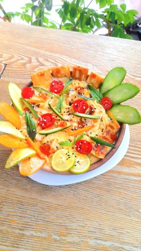 اول از همه اینکه غذای کره ای نیست، صرفا چند تیکه گوشت و سبزیجات رو برداشته و با هم قاطی کرده نول همون نودل اماده تو بازاره که با سبزیجات و سس پوشونده شده، تنها نکته مثبتش دکورشه که طرفدارهای این فرهنگو جذب کنه