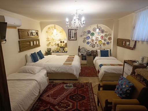 هتل خوبی هست ولی توقع زیادی نباید داشته باشید هتل توی بافت قدیمی و شلوغ شیراز هست برای جای پارک به مشکل میخورید اتاق چهار تخته گرفتیم ها همانطور که مشاهده میکنید خیلی کوچیک و دلگیر هست.