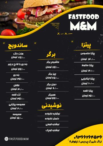 فست فود ام اَند ام در محله شهرک پردیس 1 اراک و خیابان نیلوفر ۸ واقع شده است. این مکان یکی از یازده فست فود در محله شهرک پردیس 1 اراک میباشد و از نظر موقعیت جغرافیایی در نزدیکی بازارچه پردیس یک و همچنین تالار پذیرایی و رستوران دریای نور، مرغ و ماهی مهدی، املاک وزرا، دبستان پسرانه حاج کاظمی و لوازم خانگی و کادویی کارن قرار گرفته است.