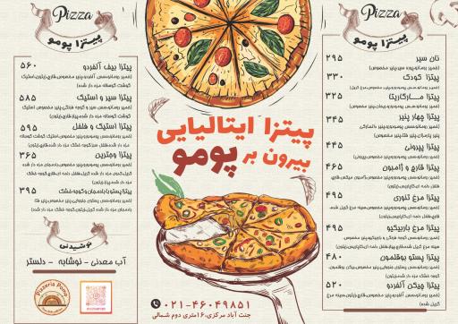 پیتزا ایتالیایی پومو (فست فود) در محله جنت آباد تهران و خیابان لاله سوم واقع شده است. این مکان یکی از چهل و هفت فست فود در محله جنت آباد تهران میباشد و از نظر موقعیت جغرافیایی در نزدیکی بازار بزرگ جنت و همچنین سرزمین رنگ مو، طرح رسم پارسه، دبستان آرهاشم، نانوایی تافتون سنتی تنوری و نمایندگی ایرانسل قرار گرفته است.
