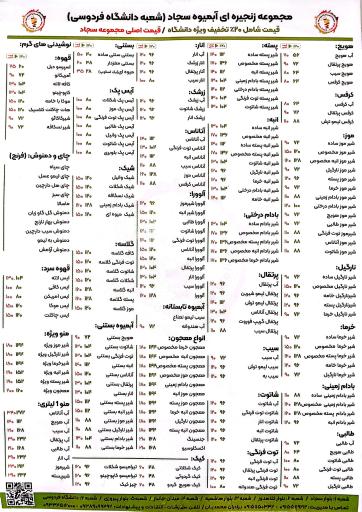آبمیوه سجاد شعبه دانشگاه فردوسی (بستنیفروشی و آبمیوهفروشی) در محله دانشگاه مشهد و بلوار وکیل آباد، پردیس، هنر واقع شده است. و از نظر موقعیت جغرافیایی در نزدیکی زمین چمن 22 بهمن دانشگاه فردوسی، آفرینشگاه خواهران، فروشگاه مواد غذایی پردیس 1، سالن مطالعه و رایانه مرکزی و چاپ کوثر قرار گرفته است.