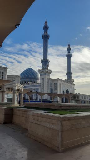 مسجدی با عظمت و نورانی در ده دقیقه پیاده روی به حرم مطهره میرسید و البته کنا یک پارکینگ طبقاتی واقع شده است