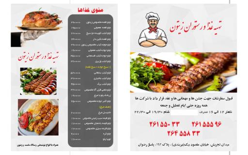 تهیه غذای زیتون (کترینگ و تهیه غذا) در محله جماران تهران و خیابان چهاردهم واقع شده است. این مکان یکی از پنج کترینگ و آشپزخانه در محله جماران تهران میباشد و از نظر موقعیت جغرافیایی در نزدیکی مراکز مهمی مانند شهربازی ادونچر کندو، بیمارستان فوق تخصصی قلب بقیه الله جماران، خانه موزه آیت الله هاشمی رفسنجانی، چنار جماران و جم سنتر و همچنین ایفا سرام، کافه هاگ، مطبخ قمر ، حسینیه شیرازیها و نانکده گندم طلا قرار گرفته است. همچنین با توجه به نظراتی که کاربران در اپلیکیشن نشان به این مکان دادهاند میتوان گفت این مکان یکی از کترینگها و تهیه غذاهای خوب این منطقه میباشد.