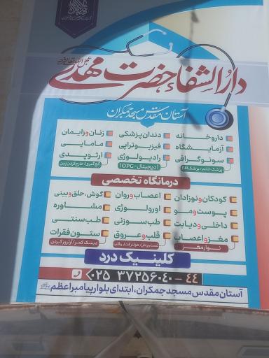 دارالشفا حضرت مهدی (کلینیک و درمانگاه) در قم و بلوار نرجس خاتون واقع شده است. و از نظر موقعیت جغرافیایی در نزدیکی مراکز مهمی مانند موزه دین و زندگی و بازارچه گل نرگس و همچنین باب المعصومه (درب شماره 2 مسجد جمکران)، رستوران لوکس گل نرگس، باب المعصومه، داروخانه و چایخانه جمکران قرار گرفته است.