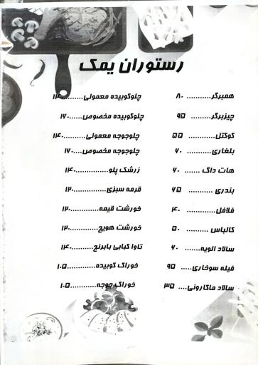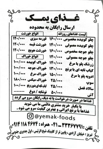 غذای خانگی یمک (طباخی) در محله مارالان تبریز و خیابان شهید جدیری جنوبی واقع شده است. این مکان یکی از سه طباخی در محله مارالان تبریز میباشد و از نظر موقعیت جغرافیایی در نزدیکی تعاونی کسری و همچنین هایپر مارکت پیشقدم، کلینیک شیخ الرئیس، کله پزی رامسر، قنادی کوماج و شهریز Shahriz قرار گرفته است. همچنین با توجه به نظراتی که کاربران در اپلیکیشن نشان به این مکان دادهاند میتوان گفت این مکان یکی از طباخیهای خوب این منطقه میباشد.