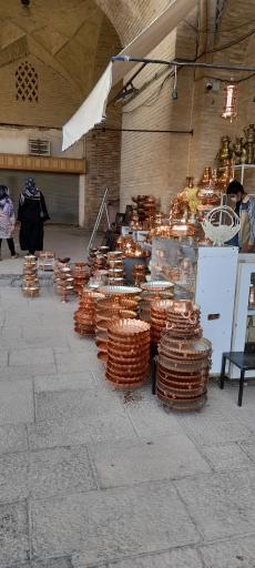 یه عالمه ظروف و تابلوی مسی زیبا اینجا هست، ورودی بازار یه پته فروشی هم هست.