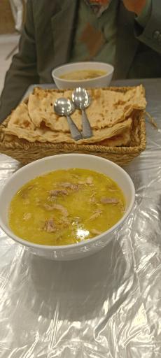 ما برای صرف صبحانه رفتیم ابگوشت رقیق بود و خیلی مزه روغن دنبه میداد احساس میکنم بجای مغز دنبه ریزچرخ شده روش ریخته بودن در هر صورت من ابگوشتش رو نخوردم بناگوش هم عادی بود استکانهای چای هم خیلی لک لکی بود و سینی هم کثیف بود