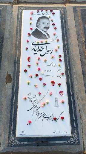 مزار رسول خدایاری (بنای یادبود) در استان تهران، شهرستان ری، بخش کهریزک و خیابان اخلاص واقع شده است. و از نظر موقعیت جغرافیایی در نزدیکی قطعه 307، مزار کربلایی سید رضا مرتضوی، دکه 307، آرامگاه ولی الله ابراهیمی و دکه گل فروشی قرار گرفته است.