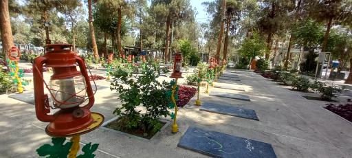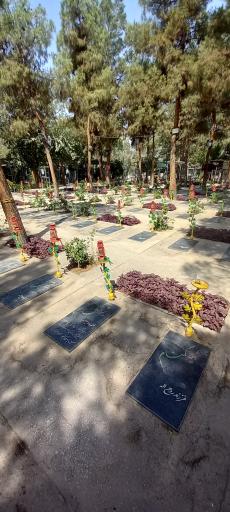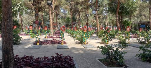 مقبره شهدای گمنام شهدایی که حاجت داده اند سنگ مزارش تعویض شده و بر آن نوشته اند: حاجت گرفته شهید.