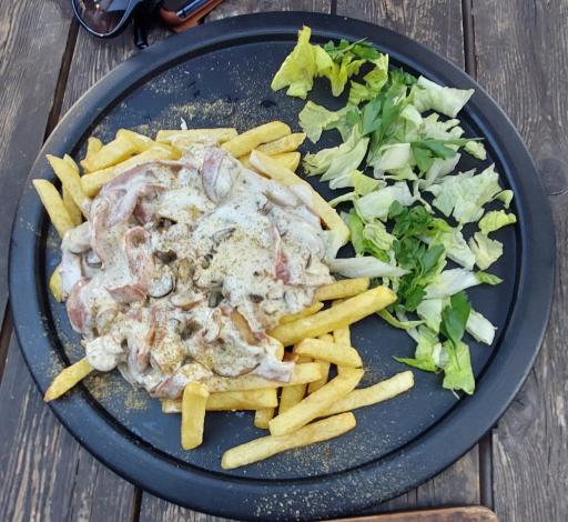 اون منطقه کافه بزرگ و خوب کم داره.سالا سزار و نان سیرشون خوب بود. فضای داخلی و روف داره که روف پنکه ابی و گرم کننده داره.در هر رو فضا قلیون می کشند.در کل غذاها معمولی اند. محیط خوبی برای گپ زدن با دوستان هست