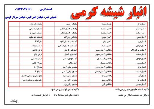 اگر شما هم به فروشگاه انبار شیشه کرمی رفتید، حتماً نظرتان در مورد آن را از طریق کامنت با ما به اشتراک بگذارید. میتوانید در ادامه عکسهایی از این فروشگاه را ببینید. تصاویر مربوط به فروشگاه انبار شیشه کرمی را از طریق گزینه "افزودن تصویر به این مکان" با ما به اشتراک بگذارید.