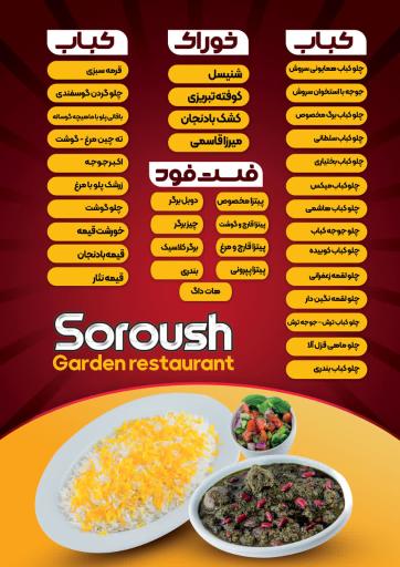 باغچه رستوران سروش در البرز، شهرستان ساوجبلاغ و خیابان معلم واقع شده است. و از نظر موقعیت جغرافیایی در نزدیکی تاکسی سرویس فرهنگ، داروخانه دکتر مهسا پادیاب و مدرسه قرار گرفته است.