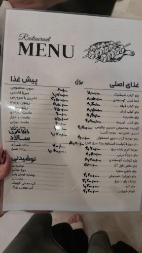 غذاش پرحجم بود به نسبت ولی خیلی خفن نبود قیمتها هم بالا بود اردیبهشت ۱۴۰۴ کته کبابی ۷۵۰ و فسنجون ۳۵۰ کته کبابی معمولی و فسنجون خوشمزه بود کنار غذایی ها اصلا جالب نبود زیتون پرورده بسیار ضعیف و ۹۵ تومنوگرون ماست کوزهای معمولی میرزا قاسمی معمولی و گرون من به شخصه انتظار بیشتری داشتم برخورد هم خوب بود