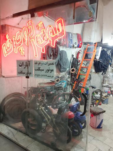 آپارات و تعمیرات موتور و دوچرخه (تعمیرگاه موتورسیکلت) در محله سرافرازان مشهد و بلوار دلاوران واقع شده است. این مکان یکی از دوازده تعمیرگاه موتورسیکلت در محله سرافرازان مشهد میباشد و از نظر موقعیت جغرافیایی در نزدیکی بیمارستان خطیب و همچنین مسجد حجت بن الحسن (عج)، ساندویچ شبهای بغداد، ایستگاه اتوبوس دلاوران 16، مجموعه غذایی ۴۷ و کبابی لویزان قرار گرفته است.