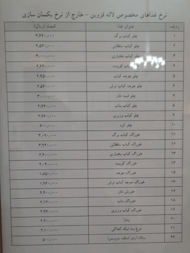 رستوران لاله قزوین با محیط آرام و دلنواز ،با پرسنل با تجربه و خوش برخورد ،بهداشت بسیار عالی ،دارایی امکانات رفاهی مطلوب.
