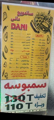 فست فود دانی در محله شهرک رسالت تهران و خیابان شهید اکبر معصومی واقع شده است. این مکان یکی از هفت فست فود در محله شهرک رسالت تهران میباشد و از نظر موقعیت جغرافیایی در نزدیکی بازار صالح آباد تهران و همچنین رستوران پدیده، ساندویچ و پیتزا شهرک، داروخانه مرکزی شهرک دکتر حمیدرضا جعفری، فروشگاه زنجیره ای افق کوروش و قهوه استارتک قرار گرفته است. همچنین با توجه به نظراتی که کاربران در اپلیکیشن نشان به این مکان دادهاند میتوان گفت این مکان یکی از فست فودهای خوب این منطقه میباشد.