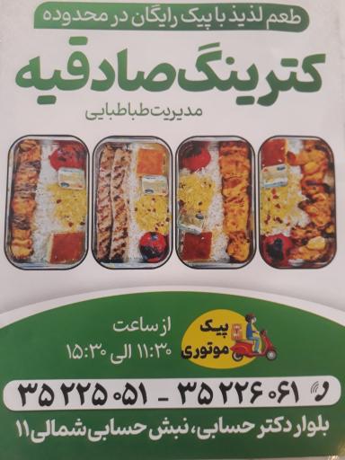 کترینگ صادقیه (کترینگ و تهیه غذا) در محله فرهنگیان مشهد و خیابان حسابی شمالی 11 واقع شده است. این مکان یکی از پنج کترینگ و آشپزخانه در محله فرهنگیان مشهد می‌باشد و از نظر موقعیت جغرافیایی در نزدیکی مراکز مهمی مانند سیاره بازی، بخش اطفال بیمارستان ناظران و مجتمع تجاری دایموند و همچنین کترینگ آویشن، رستوران صادقیه، مسجد امام صادق (ع)، پایگاه سلامت دکتر حسابی و مشاوره کسب و کار معصومی قرار گرفته است. همچنین با توجه به نظراتی که کاربران در اپلیکیشن نشان به این مکان داده‌اند می‌توان گفت این مکان یکی از کترینگ‌ها و تهیه غذاهای خوب این منطقه می‌باشد.