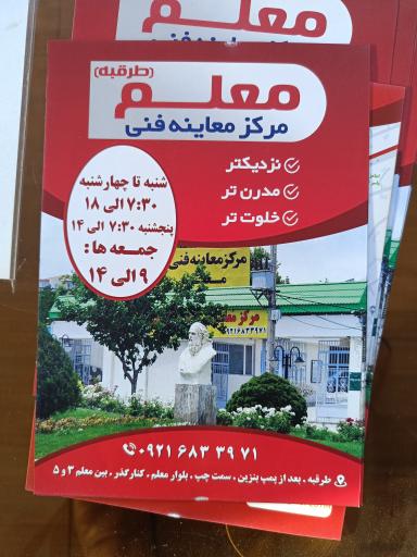 مرکز معاینه فنی معلم در ابندای بلوار معلم طرقبه و نزدیک ترین مرکز بین مراکز طرقبه و شاندیز به وکیل آباد و شهر مشهد می باشد .