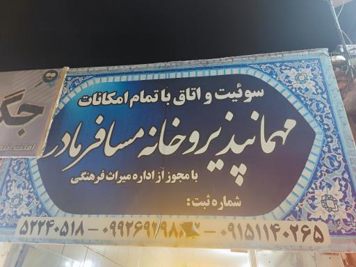 مهمانپذیر سوئیت مسافرخانه مادر (مهمانپذیر و پانسیون) در تربت حیدریه و بلوار فردوسی واقع شده است. و بهصورت شبانهروزی به مراجعهکنندگان خدمات ارائه میدهد و از نظر موقعیت جغرافیایی در نزدیکی برج جهاد و همچنین قهوه گذر، پمپ بنزین بهشت عسکری، میدان جهاد، پارک سردار شهید خاکسار (تربت) و رستوران دیلمون قرار گرفته است.