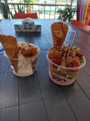 تمیز و مرتب بود. میوه ها درسته بود(قاچ نشده بود)که البته شاید بعضیا بپسندن.بستنیش خوشمزه بود فقط تنوع طمعهاش کم بود.من توت فرنگی و طالبی انتخاب کردم خوشمزه بود.