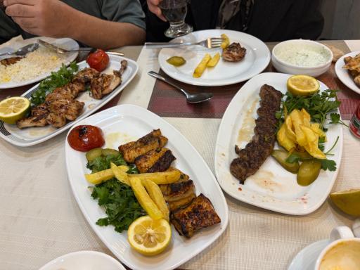 جوجه کباب سفارش دادیم. بسیار بدمزه و نپخته. اصلا پیشنهاد نمیکنم. قیمت زیاد کیفیت پایین
