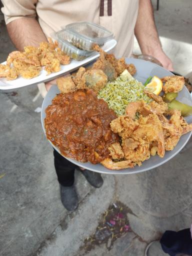 کیفیت غذا ها بالاست و حجم خوبی دارن از نظر قیمت نه ارزونه نه خیلی گرون، اما به شدت تنده و برنج عربیشون ادویه های درشت آسیاب نشده داره که برای خیلیا خوشایند نیست، قلیه میگو هم بسیار تند بود، اما سایر ماهی ها خوشمزه بودن.