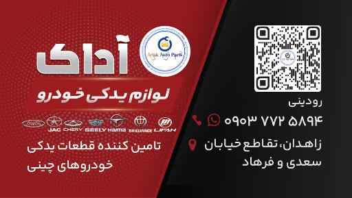 لوازم یدکی خودروهای چینی آداک در زاهدان و خیابان فرهاد واقع شده است. و از نظر موقعیت جغرافیایی در نزدیکی مراکز مهمی مانند بیمارستان بهاران و دنیای برزنت سعید و همچنین تعویض روغن زحمتکش، ترمز سازی رودینی، سیم کشی و باتری سازی جواد، لوازم یدکی سبحان و باطری سازی شهرام قرار گرفته است.