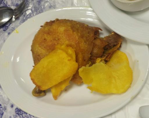 برنج شفته و مثل اینکه مجدد گرم کردند و اینکه جوجه خوب پخته نشده بود ، مرغ هم بو و طعم خاصی نداشت من نمیدانم چطوری مردم به این غذا رای می دهند ؟!