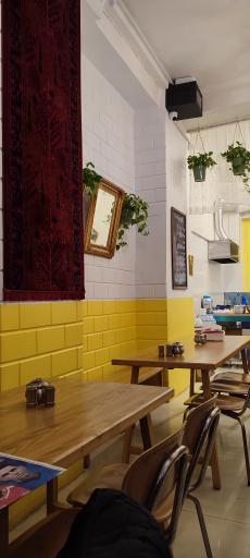 یک کافه صبحانه دنج و خوش انرژی برای خوردن یک غذای سبک ساعت ۱۸ غروب به اینجا اومدم یه کشک بادمجون خوشمزه خوردم بعدش یه چایی خوردیم عالی یه تابلو کمال الملک رو دیواره عالییی همه جز به جز این کافه پر از داستان و خاطره های قشنگه حس بودن تو این فضا با موسیقی سنتی ایرانی با میز های چوبی و صندلی های قدیمی با مدیریت خانم محمدی خوش اخلاق و پر انرژی