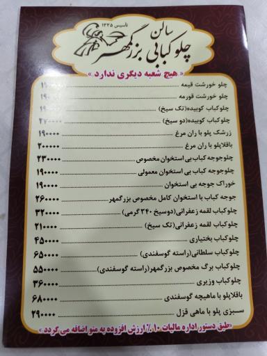 اطلاعات و آدرس دقیق این رستوران در ادامه قابل مشاهده است. فراموش نکنید اگر به رستوران چلوکبابی بزرگمهر رفتید، حتماً نظر خودتان را بهصورت کامنت در بخش نظرات برای ما و دیگر کاربران ِ نشان قرار دهید.