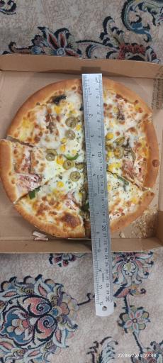 من پیتزا برلین امریکایی ۲۴ سانتی متری گرفتم اولا قطرش ۲۰ سانت بود اصلااااااا گوشت توش نبود کیفیت ضعیف فقط نونش خوب بود