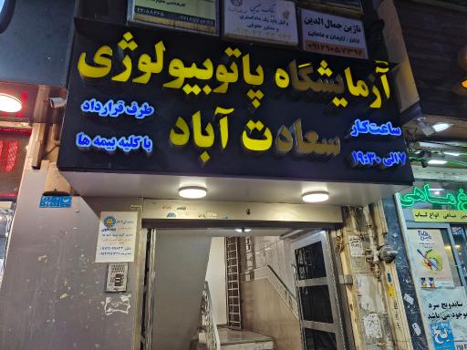 آزمایشگاه پاتوبیولوژی سعادت آباد (آزمایشگاه تشخیص طبی) در محله درختی تهران و خیابان حافظی واقع شده است. این مکان یکی از شش آزمایشگاه تشخیص طبی در محله درختی تهران میباشد و از نظر موقعیت جغرافیایی در نزدیکی مرکز خرید اریکه ایرانیان و همچنین بابا پیتزا ، رستوران پدیده شاندیز، داروخانه شبانه روزی دکتر یوسف زاده، سینما اریکه ایرانیان و کافه کنافه و شیرینی لبنانی روشه (غرب) قرار گرفته است. همچنین با توجه به نظراتی که کاربران در اپلیکیشن نشان به این مکان دادهاند میتوان گفت این مکان یکی از آزمایشگاههای خوب این منطقه میباشد.