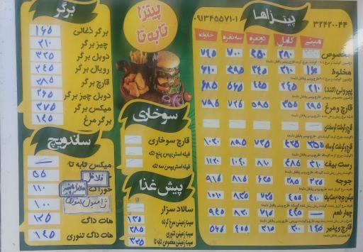 بهترین نوع پیتزاها رو داره و قیمت هاش هم بصرفه هست نزدیک ۷ سال هست از اینجا پیتزا میگیرم طعم پیتزاهاش هم خیلی هم عالی و خوشمزه هست 🌹⚘️🌹⚘️🌹⚘️🌹 لبیت منو جدید رو هم میزارم واسه دوستانی که قیمت هارو میخوان بدونند