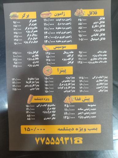 یه فست فود خوب و به صرفه با بهترین کادر و سرعت عمل بالا،منوی همه ی ساندویچ و پیتزا ها