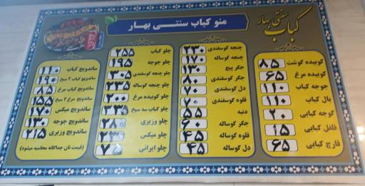 قصابی و کبابی بهار (کباب و حلیمفروشی) در کرمان و بلوار سرباز واقع شده است. و از نظر موقعیت جغرافیایی در نزدیکی شرکت تولید نهال طوبی، تعمیرپلوس علی، لوازم یدکی منصور آشور ماهانی ، مرکز تشخیص رنگ عباسپور و آژانس عرفان سیر قرار گرفته است. همچنین با توجه به نظراتی که کاربران در اپلیکیشن نشان به این مکان دادهاند میتوان گفت این کبابی یکی از کبابیها و حلیمفروشیهای خوب این منطقه میباشد.