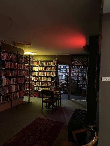 نمایش موقعیت منیک کتاب فروشی با انرژی خیلی خوب و محتوای کتاب های با ارزش، یکبار در گشت و گذار در یوسف آباد بهش برخوردیم و واقعا از فضای این کتابفروشی و همینطور رفتار محترمانه فروشنده محترم لذت بردیم. قفسه کتاب های خوانده شده و زبان اصلی بسیار ارزشمند بود و نشون میداد که مدیریت با علاقه فراوان نسبت به جمع آوری این محتوا اقدام کرده. حتما سر بزنید.