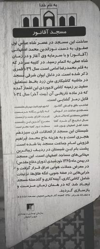 مسجد بسیار فوق العاده خیلی با صفا خیلی با روح ماشاالله آتشفشان انرژی گویا یکی از مساجد قدیمی شهر اصفهان هستش فقط در قسمت مردانه مسجد ۲۱ طاق و چشمه زیبا دیده می شود ظاهرا در مجموع ۳۵ طاق و چشمه در یکی از شبستان های مسجد ساخته شده که در آن نماز جماعت برگزار می شود توصیه می کنم مشرف بشید مسجد حتی اگر یکبار هم که شده باشه