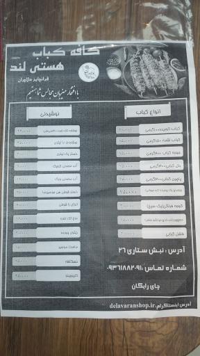 کافه کباب هستی در محله تربیت مشهد و خیابان ستاری 26 واقع شده است. این کافیشاپ یکی از دو کافه رستوران در محله تربیت مشهد میباشد و از نظر موقعیت جغرافیایی در نزدیکی آبمیوه استوا ، ایستگاه اتوبوس شهید ستاری 19، دبیرستان دولتی اردکانی، آشپزخانه و غذای آماده ثمره و کافه دارما قرار گرفته است.