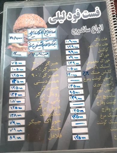 فست فود لیلی در محله ولیعصر مشهد و خیابان حجاب 32 واقع شده است. این مکان یکی از هجده فست فود در محله ولیعصر مشهد میباشد و از نظر موقعیت جغرافیایی در نزدیکی بازارچه خود اشتغالی و همچنین پارک آبی ایرانیان مشهد، دفتر کفالت اتباع خارجی 508، ایستگاه اتوبوس حجاب 8، کافه صبحانه سانسوریا و کلینیک دندانپزشکی تخصصی پارمیس قرار گرفته است.