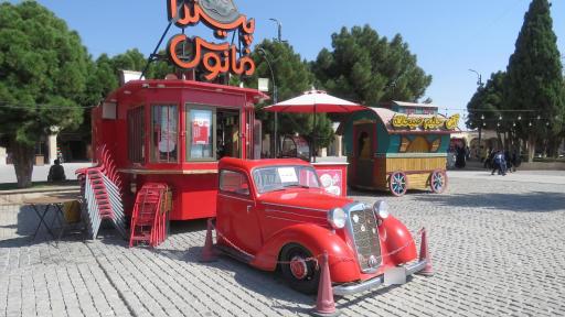 نمایش موقعیت منیکی از فست فود های این میدان است که بصورت یکی از ماشین های قدیمی با رنگ قرمز. ساخته است.