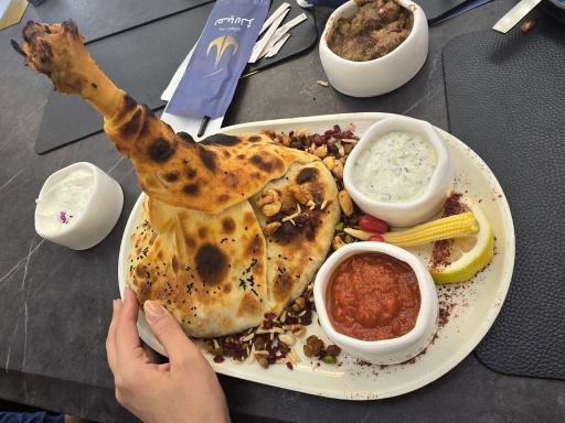 فضا و دکور و رنگ بندی ها عالی و آرامش بخش و طراحی شده.... با توجه به عربی بودن منو، پرسنل اطلاعات کافی از جزئیات غذا ها نداشتند، کیفیت غذا متوسط رو به پایین بود، در کل قیمت و کیفیت غذا متناسب نبود...کبه که غذای مهم عربی هست رو هم نداشتن...پایه سه طعم سینی مزه، بادمجان و تکراری بود.