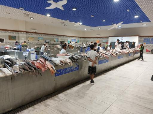 بازار ماهی فروش ها که بسیار بهداشی و مدرن و بدون بوی مشمیز کننده ماهی ساخته شده با مجسمه مرد ماهیگیری در ورودی ان که ابزار ماهیگیریش گنگو نام دارد