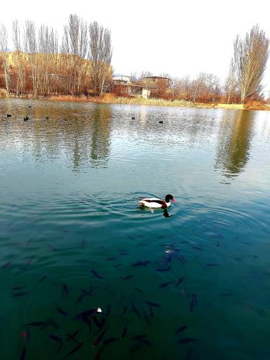 دریاچه زیبایی هست کلی اردک و غاز داره